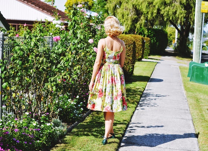 That dress is lovely! (And yes, it does match those flowers!) Your suburbs look awfully pretty… I don't think they look quite that nice or vegetated around here.