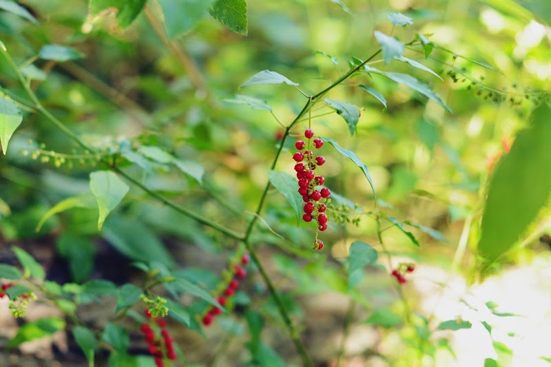 Until recently there were no flowers growing in the bushland area near our house, not even any grass. The deer had gobbled up everything they could until the whole area was left bare. So this week when we went for a walk here I was delighted to see that all of the wildflowers were back! There were even little red berries that matched the ones on this Elise Design dress that I have on loan from Kayla.